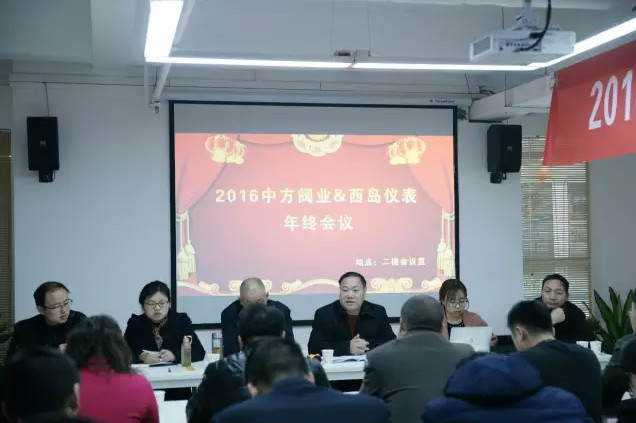 2016年12月29日,為有效總結公司2016年度工作,精密部署下階段工作開展及工作目標等任務,西島儀表年終會議在公司會議室舉行。董事長楊清強、總裁楊支丹、研發中心所長呂運朋教授、總經理吉超、總工程師張戰勝、生產部總監王喜燕等高層領導參加了本次會議。